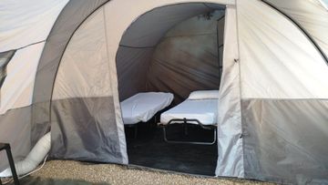 Climatizzatore; armadietto di tela; gavoni sotto ai letti per gli indumenti. All’interno 3 o 6 letti con reti, materassi, 3 o 6 cuscini. Eventuale lettino supplementare nella veranda esterna.
