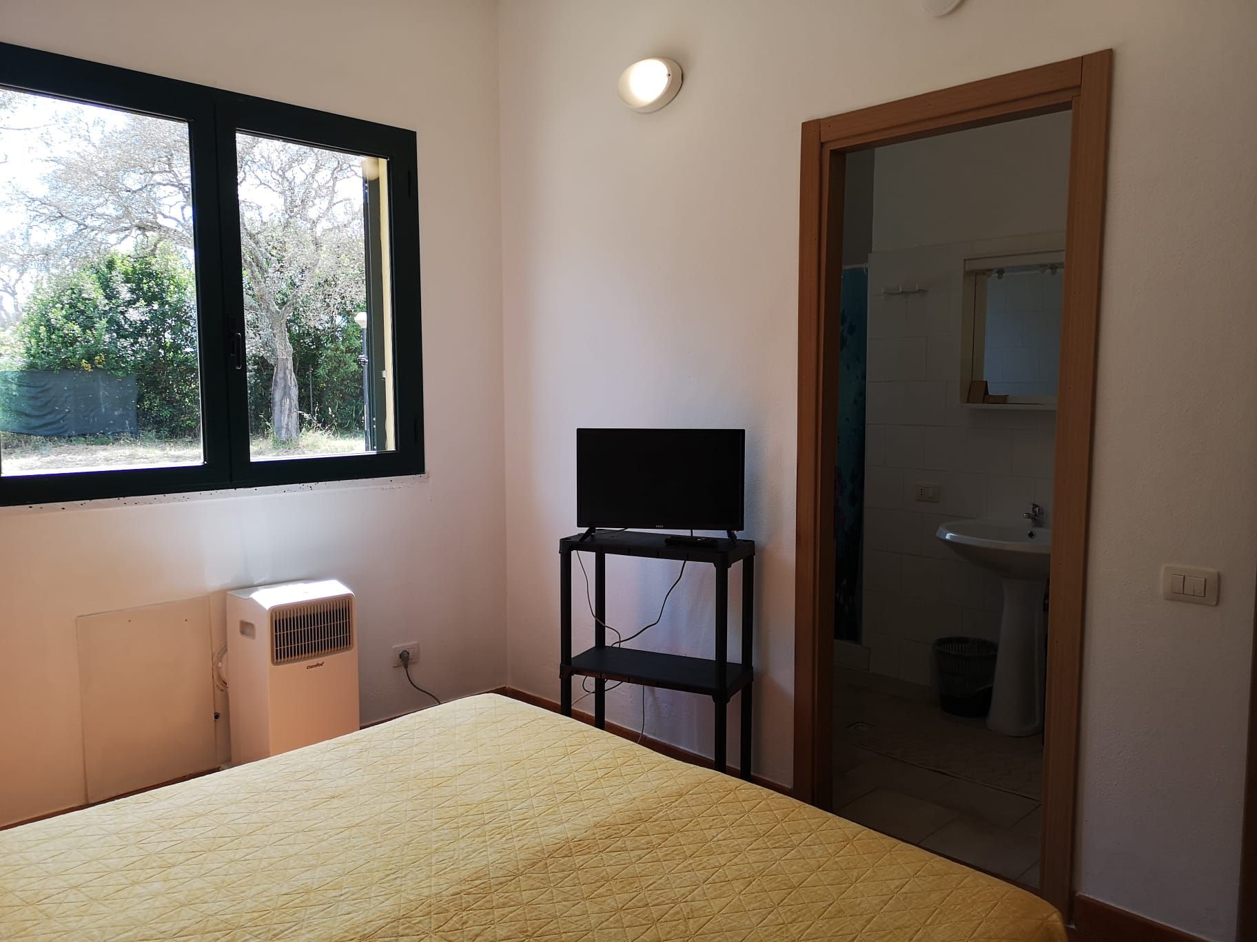 Appartamento bilocale - di 61mq composto da : veranda, cucina equipaggiata, divano, camera climatizzata con letti a castello e letto matrimoniale, bagno privato con doccia.